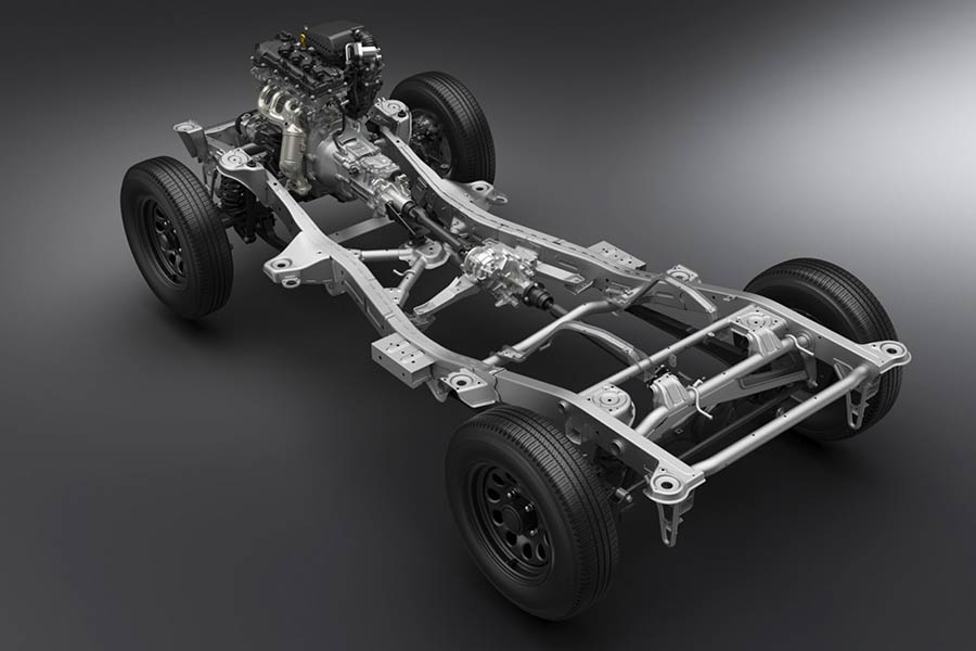 Σύμμαχος του οδηγού είναι το σύστημα τετρακίνησης All Grip Pro, σε συνδυασμό με τους άκαμπτους άξονες εμπρός – πίσω και το πλαίσιο τύπου σκάλας. Ο κινητήρας είναι ο γνωστός 1.500άρης, ισχύος 102 ίππων στις 6.000 σ.α.λ. και με ροπή 130 Nm στις 4.000 σ.α.λ. Η μετάδοση γίνεται μέσω ενός μηχανικού κιβωτίου 5 ταχυτήτων. Το επαγγελματικό Jimny ζυγίζει 1.090 κιλά (μεικτό βάρος 1.435 κιλά), με την τελική ταχύτητα να φτάνει τα 145 χλμ./ώρα. Η μεικτή κατανάλωση είναι 6,8 λτ./100 χλμ. και οι εκπομπές CO2 είναι 173 γρ./χλμ. (WLTP).