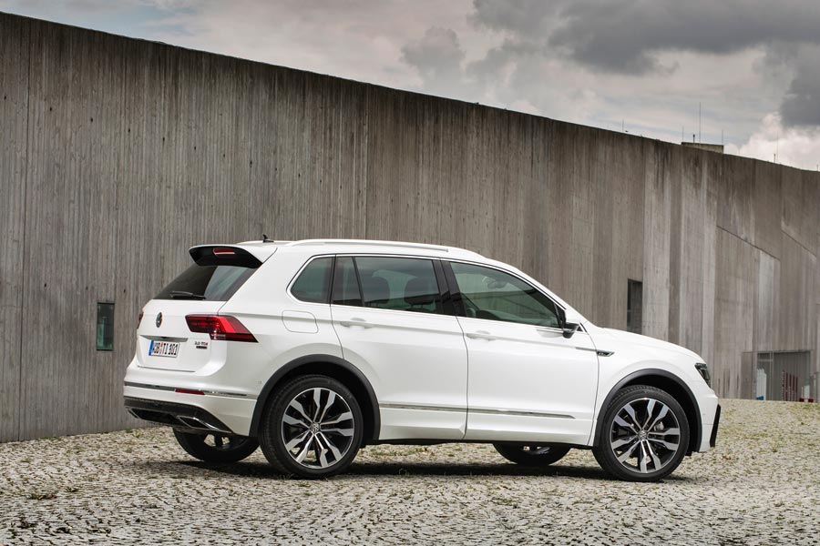 Τη δυναμική εξωτερική εικόνα του Tiguan R-Line αναβαθμίζουν διάφορα ακόμα στοιχεία, όπως είναι οι ζάντες αλουμινίου των 19 ιντσών με ελαστικά 255/45, οι πιο δυναμικοί προφυλακτήρες R-Line με το μεγάλο αεραγωγό εμπρός και το διαχύτη πίσω, το πίσω σπόιλερ, οι μαύρες προεκτάσεις στους θόλους των τροχών και τα λογότυπα R-Line στη μάσκα και στα εμπρός φτερά.