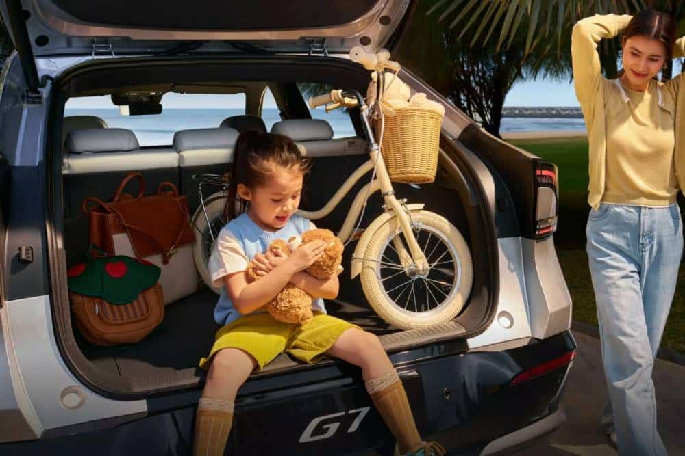 Τρεις διαφορετικές εκδόσεις του G7 προσφέρονται στους αγοραστές, με διαφορετική αυτονομία αλλά κοινό μοτέρ. Οι 602 Long Battery Life Max, 702 Ultra-Long Battery Life Max και 702 Ultra αποτελούν τις εκδοχές του κινεζικού crossover, με την αυτονομία στα 602 χλμ. και 702 χλμ. αντίστοιχα, πάντα στον κύκλο CLTC. Ανεξαρτήτως εξοπλιστικού επιπέδου και μπαταρίας (για την οποία δεν αναφέρεται χωρητικότητα), ένα ηλεκτρομοτέρ 292 ίππων και 450 Nm στον πίσω άξονα αναλαμβάνει την κίνηση, επιτρέποντας 0-100 χλμ./ώρα σε 6,5-6,6 δλ. και ηλεκτρονικά περιοριζόμενη τελική 202 χλμ./ώρα. Οι στάσεις αναπλήρωσης ενέργειας ανακοινώνονται σε σύντομα διαστήματα, χάρη στη δυνατότητα γρήγορης φόρτισης DC 451 kW που δίνει αυτονομία 436 χλμ. σε μόλις 10 λεπτά και 10-80% σε 12 λεπτά.