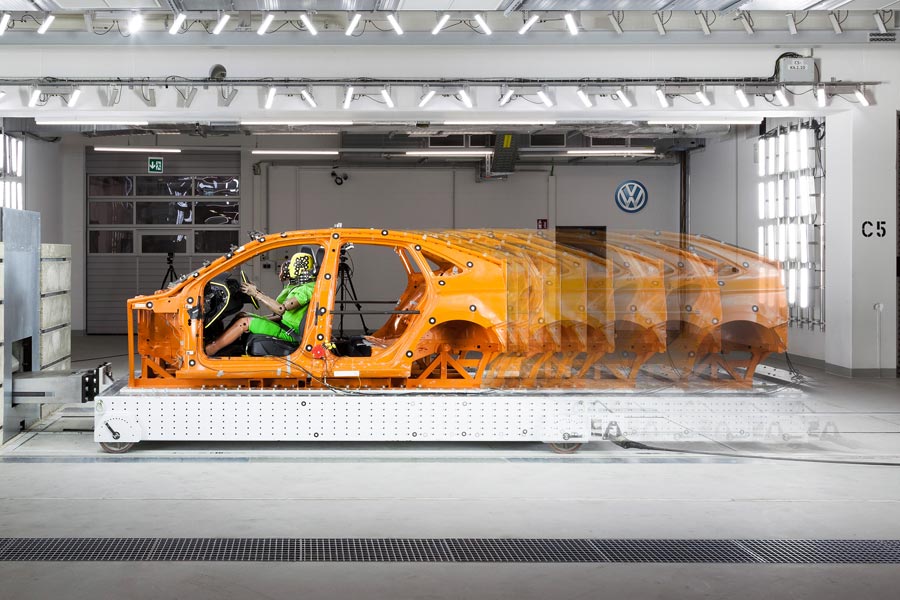 Το σημείο αναφοράς του εν λόγω κέντρου είναι μια υπερσύγχρονη μηχανή έλξης με έλκηθρο, η οποία για πρώτη φορά μπορεί να προσομοιώνει τις πλευρικές και περιστροφικές κινήσεις του οχήματος τόσο οριζόντια όσο και κάθετα. Έτσι μπορούν οι μηχανικοί της Volkswagen να μετρήσουν με ακρίβεια τη λειτουργία των σύγχρονων συστημάτων ενεργητικής ασφάλειας όπως είναι η πέδηση έκτακτης ανάγκης.
