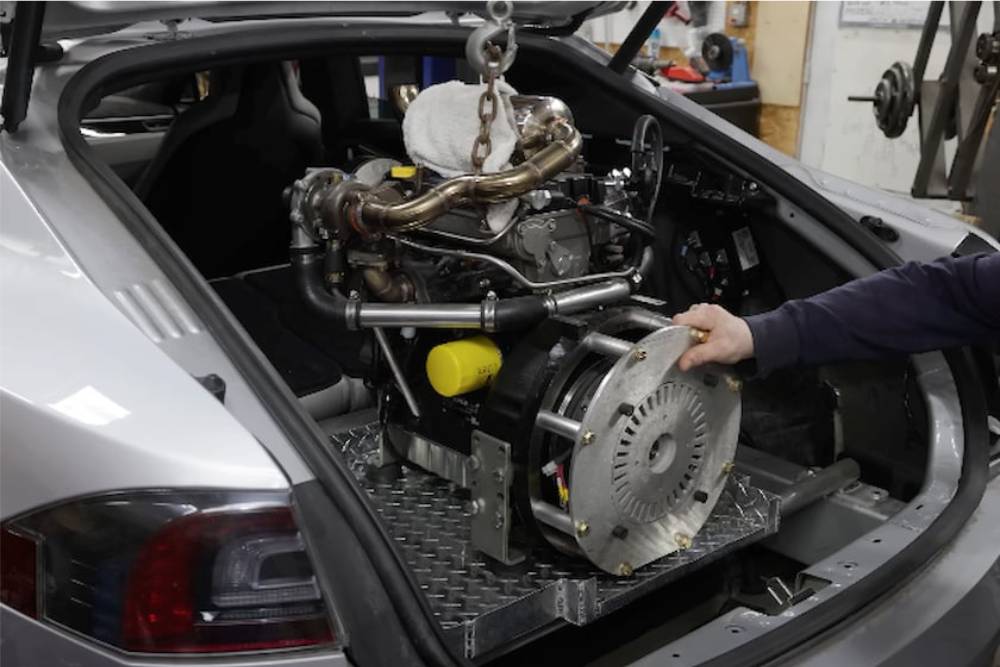 Πρακτικά όμως, η μπαταρία του Model S αντλεί συνεχώς ενέργεια από τον πετρελαιοκινητήρα. Το κανάλι Warped Perception είναι γνωστό για τις «τρελές» μετατροπές που κάνει σε Tesla, βάζοντας αυτή τη φορά ένα πετρελαιοκίνητο μοτέρ 25 ίππων σε ρόλο γεννήτριας. Λόγω της μικρής χωρητικότητάς της, βέβαια, οι δυνατότητες φόρτισης είναι πεπερασμένες και απαιτούν χαμηλή ταχύτητα για να μην αδειάζει η μπαταρία, όταν είναι χαμηλή και η στάθμη καυσίμου στο ντεπόζιτο του ντίζελ. Ούτως ή άλλως, βέβαια, ο θερμικός κινητήρας δεν μπορεί να λειτουργήσει στην πλήρη δυναμική του.