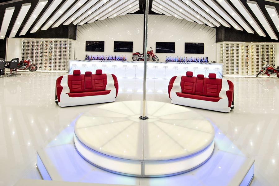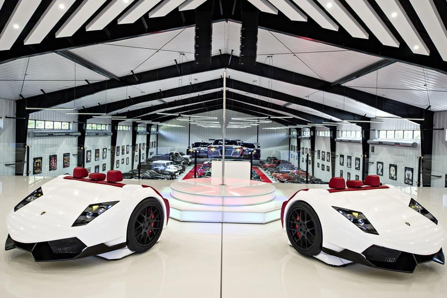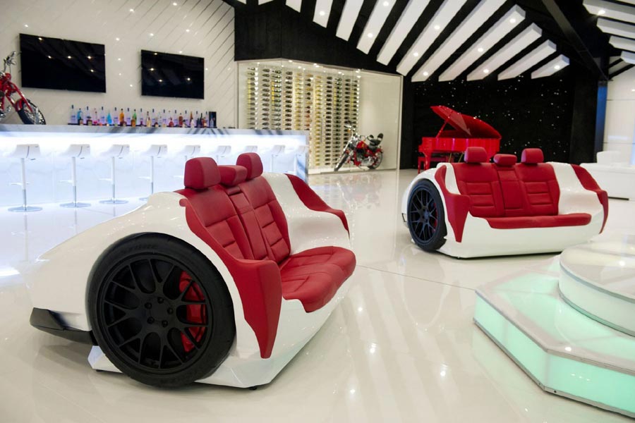 Πρόκειται για το πιο πρόσφατο δημιούργημα της εταιρείας Design Epicentrum, η οποία κατά το παρελθόν έχει παρουσιάσει και γραφείο Lamborghini και όπως φαίνεται η επιτυχία του την οδήγησε στο να φτιάξει αυτή τη φορά και καναπέ. Βέβαια, από αυτό που βλέπουμε δεν νομίζουμε πως οι συγκεκριμένοι καναπέδες είναι και οι πιο άνετοι για να «αράξεις» και να ξαπλώσεις, καθώς ο σχεδιασμός τους και η ύπαρξη καθισμάτων μπάκετ μάλλον δεν βολεύει και τόσο, παρόλα αυτά είναι ότι καλύτερο για να βάλεις στο γκαράζ σου (λέμε τώρα…). Εξάλλου εκεί είναι και οι καναπέδες που βλέπουμε εδώ. Σε ένα επιβλητικό γκαράζ με 50 supercars. Είναι έτσι σε απόλυτη αρμονία με το περιβάλλον τους.
