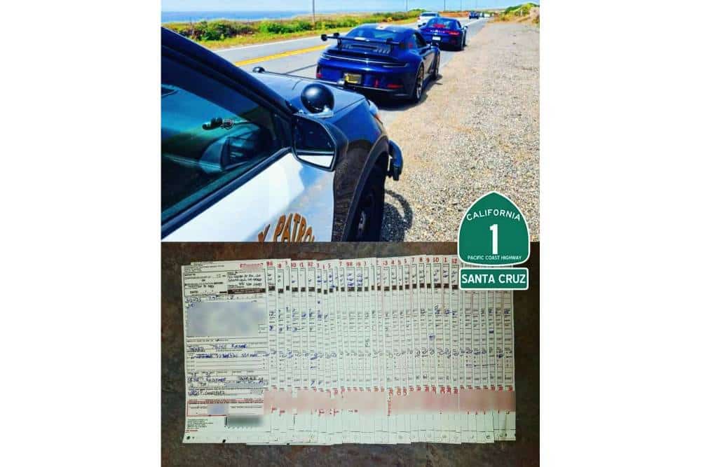 Μια 911 GT3 και μια Carrera S κλήθηκαν να κάνουν στην άκρη, αρχικά λόγω υπερβολικής ταχύτητας. Ο έλεγχος ανακάλυψε κι άλλα «λαβράκια», όπως ληγμένα ασφαλιστήρια και πολλά ακόμα, ανεβάζοντας το συνολικό αριθμό των παραβάσεων στις 34, και για τους δύο! Η υψηλότερη επίδοση που κατέγραψαν οι άνθρωποι του CHP για τόσο μικρό αριθμό αυτοκινήτων, παρότι σε κάποια φάση σταμάτησαν τρεις Corvette. Σε αυτή την περίπτωση, όμως, το «κοντέρ» δεν ξεπέρασε τις 8 παραβάσεις. Για μεγάλη τους τύχη, και όλως περιέργως για Αμερική, καμία από τις δυο 911 δεν κατασχέθηκαν.