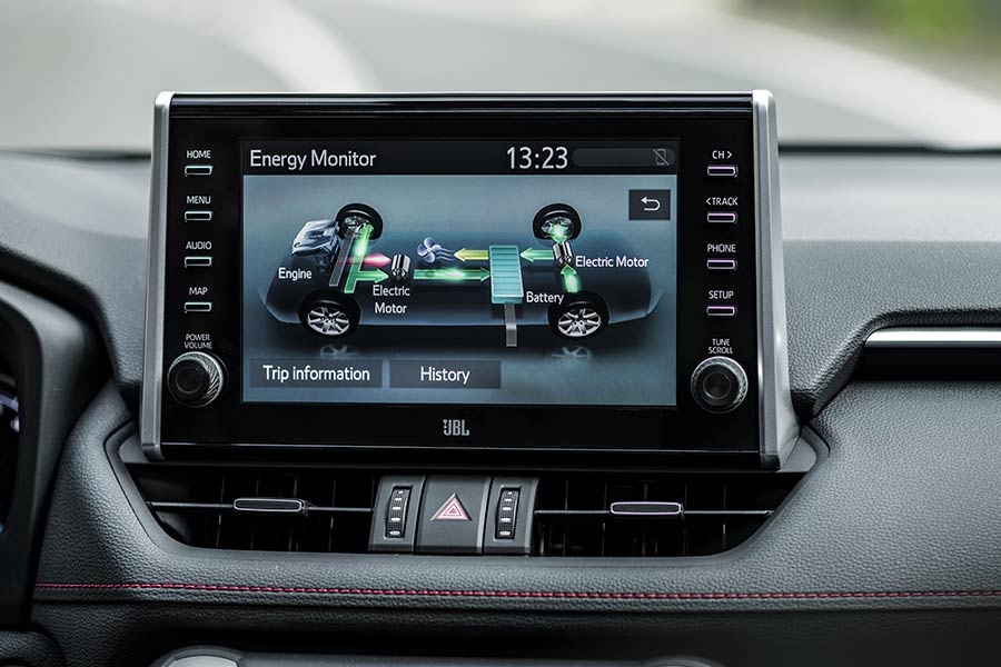 Το RAV4 Plug-in Hybrid διαθέτει ακόμα τέσσερις διαφορετικές επιλογές για το plug-in hybrid σύστημα. Αυτές είναι η EV (electric vehicle), HV (hybrid vehicle), Auto HV/EV και Charging. Επιπλέον περιλαμβάνει τα προφίλ οδήγησης Normal, Eco και Sport, συν το Trail Mode. Με την ενεργοποίηση του τελευταίου εξασφαλίζεται αυτόματο κλείδωμα των τροχών (μόλις σπινάρει ένας τροχός δίνει ροπή σε εκείνον που έχει πρόσφυση), μέσω της έξυπνης ηλεκτρικής τετρακίνησης AWD-i. Αυτή χρησιμοποιεί τον πίσω ηλεκτροκινητήρα για να δώσει δύναμη στους τροχούς.