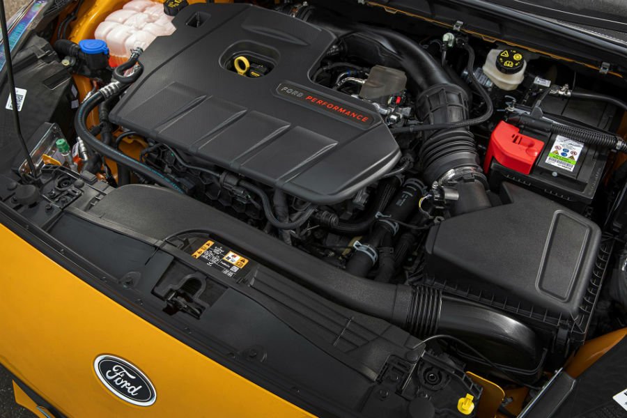 Βέβαια ο κινητήρας του ST βασίζεται σε αυτόν του προηγούμενου RS, όντας ο 2.3 EcoBoost που συναντάμε κάτω από τα καπό της βασικής Mustang και του F-150 Raptor,με ένα καινοτόμο anti-lag σύστημα επιτρέπει την ταχεία ανάπτυξη της πίεσης υπερπλήρωσης ανάλογα με τις απαιτήσεις. Επίσης, η δυνατότητα flat-shift του εξατάχυτου μηχανικού κιβωτίου, καθώς και το Launch Control συμβάλλουν με τη σειρά τους στην περαιτέρω βελτίωση της επιτάχυνσης από στάση.