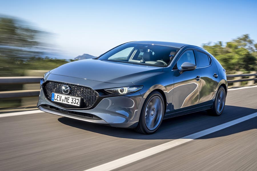 Όλες οι εκδόσεις του 3 εξοπλίζονται με 6αρι χειροκίνητο κιβώτιο, με το αυτόματο ισάριθμων σχέσεων να προσφέρεται προαιρετικά. Επίσης στάνταρ είναι το G-Vectoring Control Plus(GVC Plus), που επενεργεί στα φρένα εν είδει μπλοκέ διαφορικού, ενώ το κορυφαίο Skyactiv-X μπορεί να συνδυαστεί και με το σύστημα τετρακίνησης i-Activ AWD.