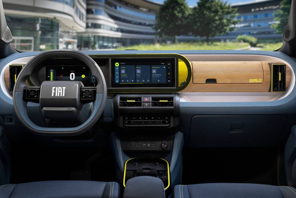 Το Grande Panda έχει μήκος 3,99 μ. και πέντε θέσεις στην καμπίνα του, όπου επίσης ρετρό και μοντέρνα στοιχεία συνυπάρχουν επιτυχημένα (οθόνες 10 ιντσών για το ψηφιακό καντράν, 10,25 ιντσών για το infotainment). Ιδιαίτερη προσοχή έχει δοθεί στην πρακτικότητα, αφού διαθέτει πολλούς αποθηκευτικούς χώρους και χώρους για έως 5 επιβάτες, ενώ αρκετό είναι και το πορτ μπαγκάζ των 361 λίτρων.