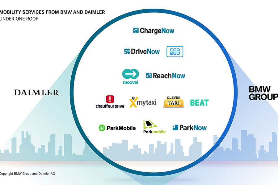 Η συμφωνία είχε επέλθει από τον Απρίλιο του 2018, όπου τότε είχε ανακοινωθεί πως οι υπηρεσίες car sharing, Car2Go και Drive Now, θα συγχωνευτούν και θα γίνουν μια. Οι δύο εταιρίες θα προσφέρουν υπηρεσίες on-demand κινητικότητας μέσω των υπηρεσιών Moovel και ReachNow, υπηρεσίες car-sharing μέσω των Car2Go και DriveNow, υπηρεσίες Ride–Hailing μέσω των MyTaxi, Chauffeur Prive, Clever Taxi και Beat, υπηρεσίες Parking μέσω των ParkNow και Parkmobile Group, αλλά και υπηρεσίες φόρτισης ηλεκτρικών οχημάτων μέσω των ChargeNow και Digital Charging Solutions.