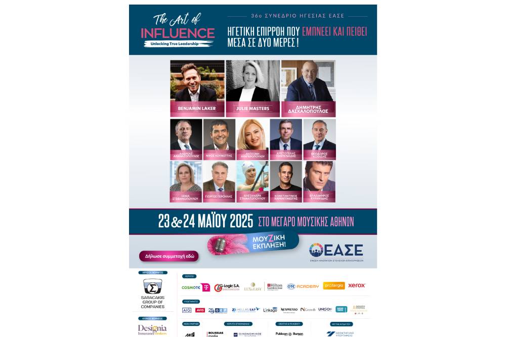 Ο Όμιλος Επιχειρήσεων Σαρακάκη υποστηρίζει ως Χρυσός Χορηγός το 36ο Συνέδριο Ηγεσίας “The Art of Influence: Unlocking True Leadership” το οποίο διοργανώνεται από την Ένωση Ανωτάτων Στελεχών Επιχειρήσεων (ΕΑΣΕ) την Παρασκευή 23 και το Σάββατο 24 Μαΐου 2025 στο Μέγαρο Μουσικής Αθηνών.