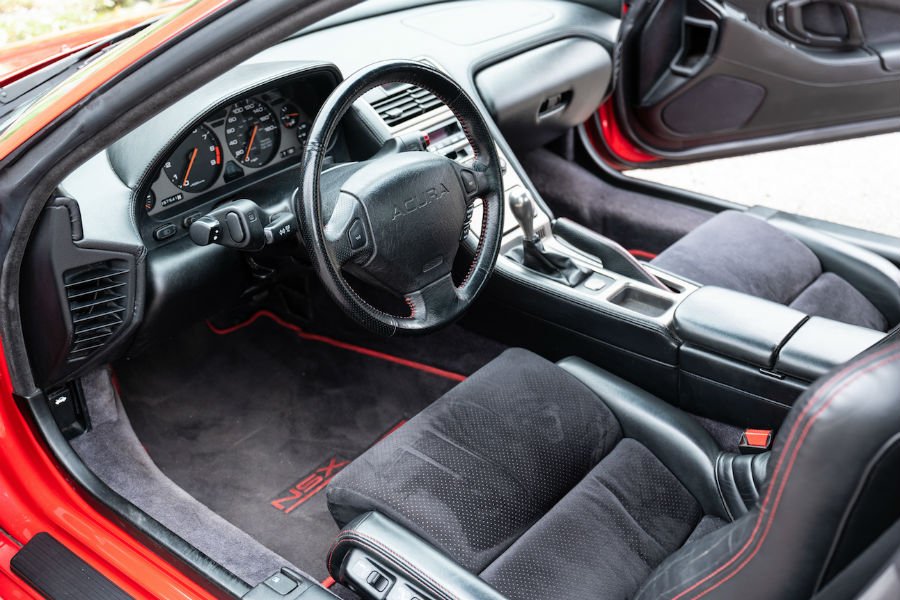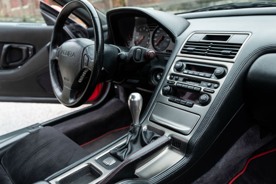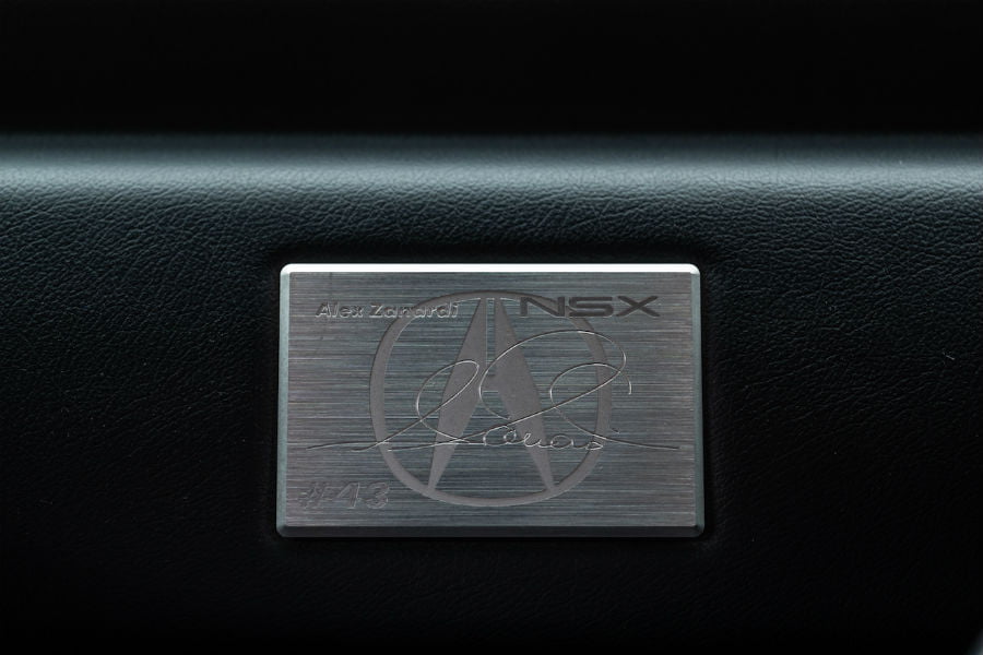 Στο εσωτερικό, οι δερμάτινες και suede επενδύσεις στα καθίσματα με τις κόκκινες ραφές, το τιμόνι της Acura με τον αερόσακο και η πλακέτα με τον αύξοντα αριθμό παραγωγής και την υπογραφή του Zanardi, δίνουν τον τόνο. Το συγκεκριμένο είναι το υπ’αριθμόν 43.