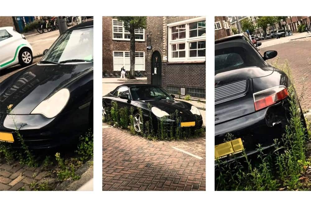 Όπως βλέπουμε, η δύσμοιρη Γερμανίδα των φωτογραφιών προέρχεται από εκείνη την περίοδο. Χρονολογίας 2002-2005, άγνωστο πότε αγοράστηκε, γνωστό πότε εγκαταλείφθηκε. Οι μαρτυρίες των Ολλανδών αναφέρουν πως η εν λόγω 911 Cabrio, κείτεται στο ίδιο σημείο εδώ και 1,5 χρόνο. Επίσης άγνωστοι οι λόγοι που οδήγησαν τον ιδιοκτήτη της στην εγκατάλειψη, εντύπωση προκαλεί το γεγονός ότι δεν την έχει μαζέψει ο δήμος τόσο καιρό. Το αυτοκίνητο δεν βρίσκεται σε κάποια επαρχιακή πόλη της Ολλανδίας, αλλά στο Άμστερνταμ. Όλως περιέργως δεν την έχει απομακρύνει κανείς, αφήνοντάς τη στη θλιβερή πραγματικότητα της συλλογής μούχλας, χόρτων, σκόνης και κουτσουλιών. Πίσω δεξιά μάλιστα εμφανίζει κι ένα πολύ έντονο βαθούλωμα στον προφυλακτήρα. Πραγματικά κρίμα, με μόνη ελπίδα την όρεξη κάποιου που θα θέλει να την αναπαλαιώσει.