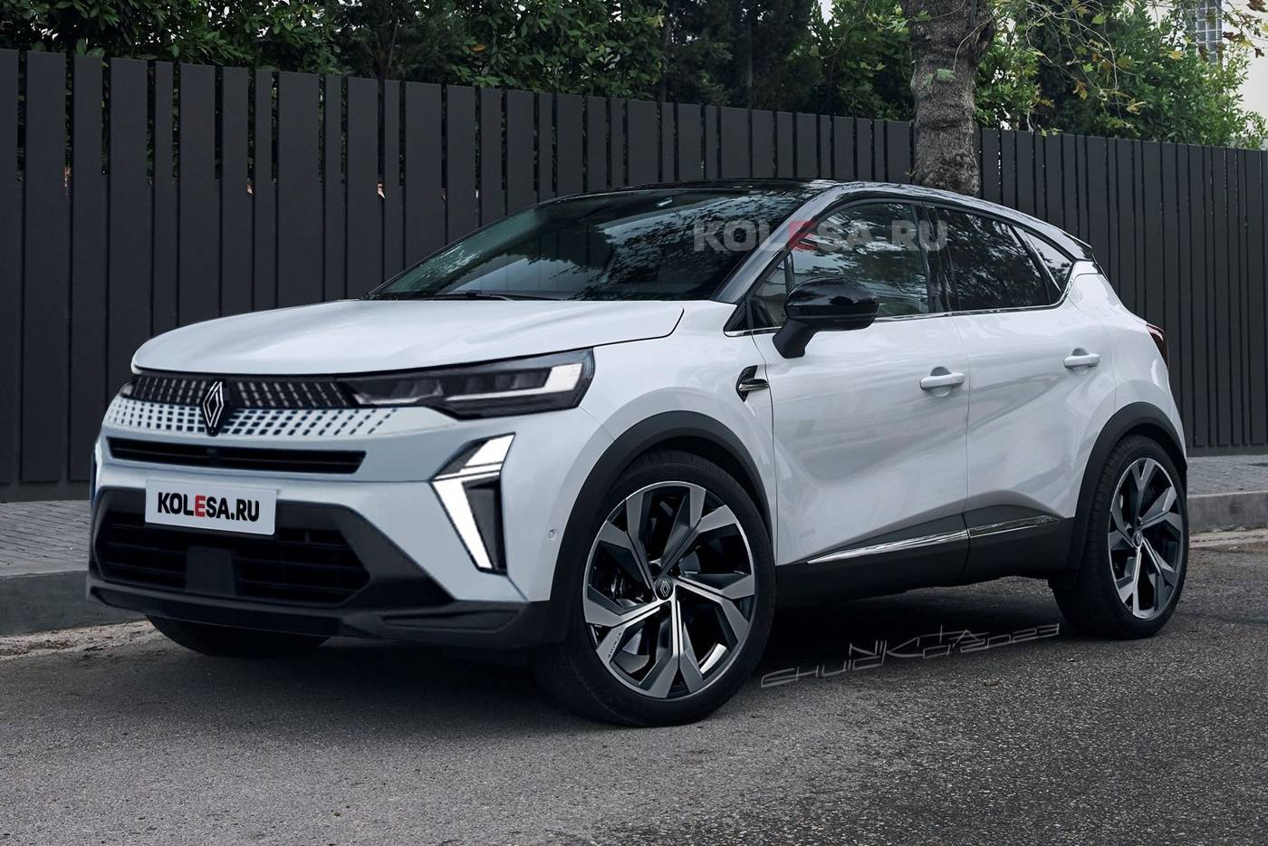 Οι συνάδελφοι στο Kolesa.ru οραματίστηκαν τη μορφή του νέου Captur, η οποία επιβεβαιωμένα θα έχει επιρροές από το Megane E-Tech. Κυρίως μπροστά, καθώς οι Γάλλοι έχουν δείξει πως εκεί επικεντρώνουν την προσοχή τους στα facelifts (βλέπε Clio). To ανανεωμένο Captur, λοιπόν, παρουσιάζεται εντελώς διαφορετικό και πολύ πιο επιβλητικό στο εμπρός μέρος, με μακρόστενα φωτιστικά σώματα και ολοκαίνουργια μάσκα, συνοδευόμενα από αιχμηρά LED στον γεμάτο ακμές προφυλακτήρα – όλα τους στοιχεία που πηγάζουν από το ηλεκτρικό Megane. Πίσω, αντίθετα, η κατάσταση είναι πολύ πιο συγκρατημένη, φιλοξενώντας μόνο νέα γραφικά στα φανάρια. Η αλλαγή στο μπροστινό αναμένεται να αυξήσει ελαφρώς το μήκος, δίχως ωστόσο να πάει πολύ πάνω από τα 4.227 χλστ. του σημερινού.