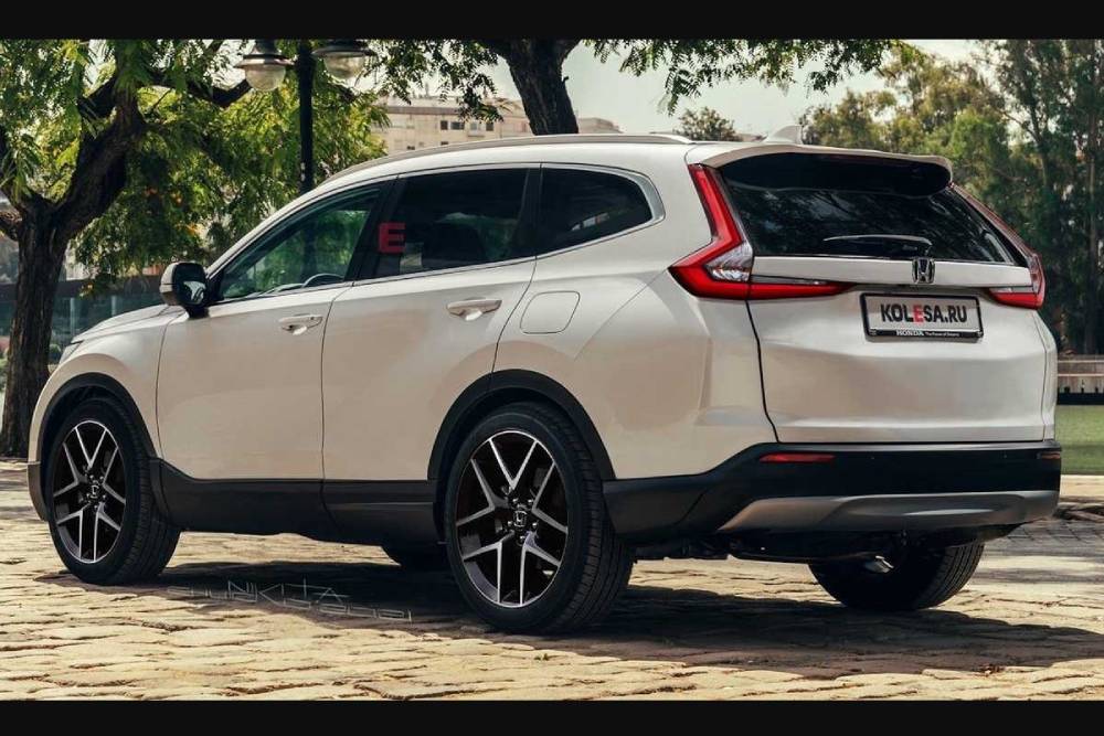 Πίσω συναντάμε μια παραλλαγή του σημερινού, με λίγες διαφορές. Το κάθετο στοιχείο των φωτιστικών σωμάτων εξακολουθεί να «αγκαλιάζει» τα φλας, συνεχίζοντας οριζόντια μέχρι σχεδόν το μέσο της 5ης πόρτας. Ούτως ή άλλως, το πίσω μέρος του σημερινού CR-V είναι από τα πιο ξεχωριστά της κατηγορίας, οπότε δεν αναμένουμε σημαντικές διαφοροποιήσεις από τους σχεδιαστές της ιαπωνικής εταιρίας.