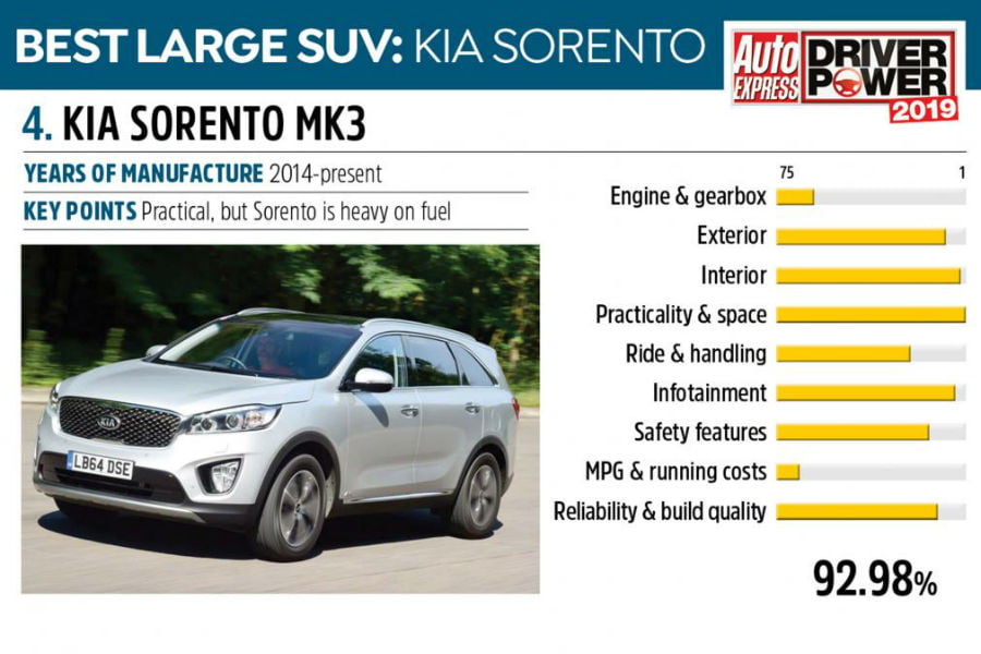 4. Kia Sorento – 92,98%