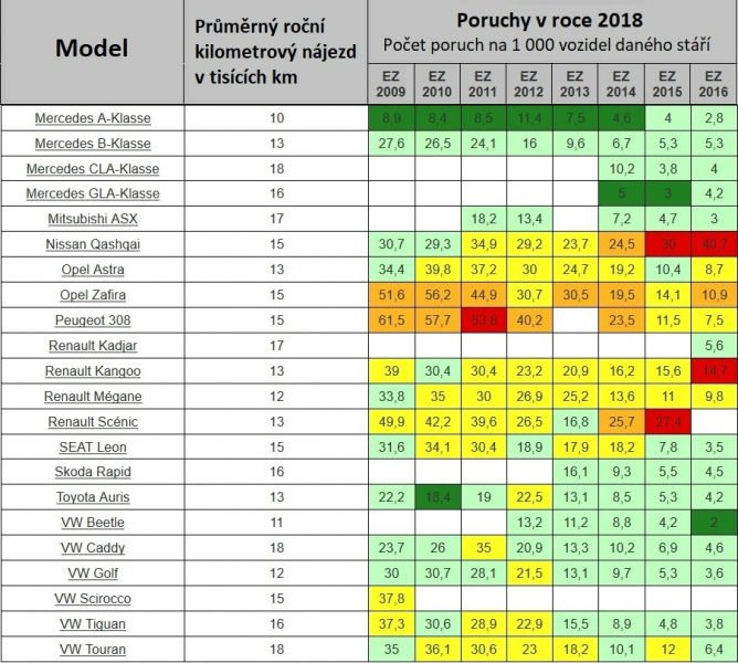 Ford S-Max (2009-2010, 2016), Opel Insignia (2013-2014, 2016), SEAT Alhambra (2013-2014) και VW Sharan (2013-2014) κρατούν τα αρνητικά πρωτεία. Το S-Max μάλιστα, παρουσιάζει το υψηλότερο ποσοστό γενικά (αυτό του 2009).