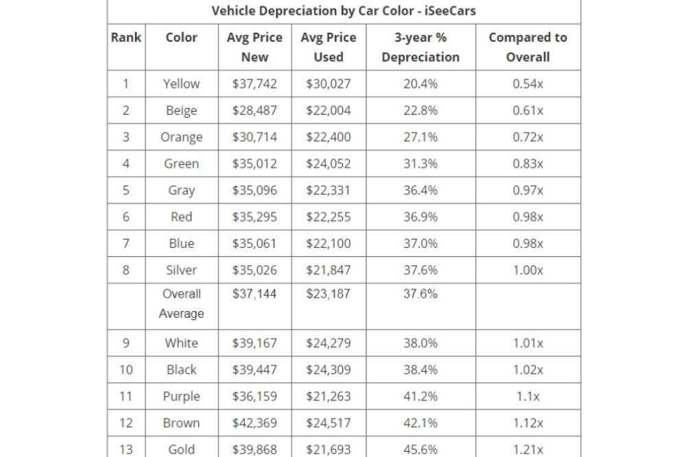 To iSeeCars πραγματοποίησε μια μεγάλη έρευνα, αναλύοντας τις πωλήσεις νέων και μεταχειρισμένων αυτοκινήτων από το 2017 μέχρι το 2020. Περισσότερες από 6 εκατ. συναλλαγές μπήκαν στο «χρωματόμετρο», ώστε να διαπιστωθεί ποιες αποχρώσεις χάνουν λιγότερο και ποιες περισσότερο σε αξία μεταπώλησης. Και τα αποτελέσματα, προκαλούν εντύπωση.