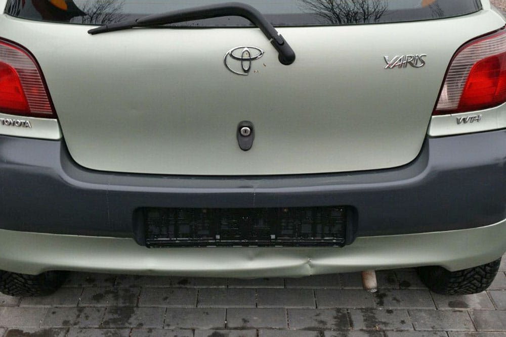 Παρά όμως την προσοχή που είχε δοθεί σε κάθε λεπτομέρεια του πρώτης γενιάς Yaris, υπήρχε και η «Αχίλλειος πτέρνα» στο τελείωμα του αμαξώματός του. Συγκεκριμένα το κάτω τμήμα στον πίσω προφυλακτήρα του δεν ήταν φτιαγμένο από πλαστικό, αλλά από μέταλλο. Έτσι με ένα απλό χτύπημα βούλιαζε εύκολα και σίγουρα δεν θα συνέβαινε αν ήταν από πλαστικό, όπως το πάνω μέρος του. Παράλληλα σε βόρειες χώρες όπου βρέχει και χιονίζει πολύ (άρα και γίνεται χρήση αλατιού), το μικρό αυτό κομμάτι εμφάνιζε σκουριά. Οπότε η φαναρτζοδουλειά ήταν αναπόφευκτη για όσους ήθελαν να έχουν το αυτοκίνητο σε πολύ καλή κατάσταση. Ακόμα και στο facelift Yaris του 2003 αυτό το κομμάτι δεν άλλαξε, παρά το ότι το εμπρός μέρος του ανασχεδιάστηκε. Μόνο στο Yaris T-Sport ήταν πλαστικός ολόκληρος ο πίσω προφυλακτήρας.