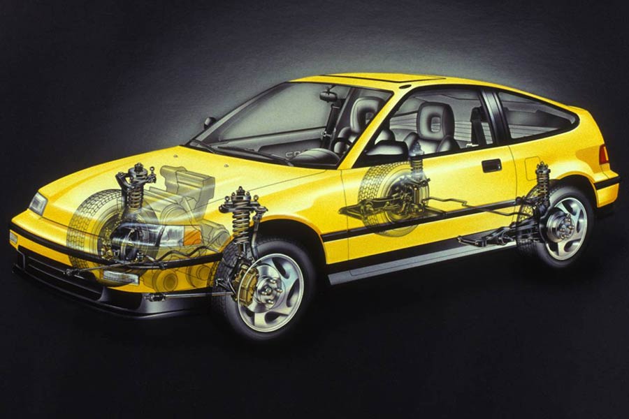 Το τέταρτης γενιάς Civic πατούσε σε ανεξάρτητες αναρτήσεις σε όλους τους τροχούς. Μπροστά δεν υπήρχε η κλασική τυπική λύση με τα γόνατα ΜακΦέρσον, αλλά η πιο ιδανική με τα διπλά ψαλίδια. Ο αείμνηστος Ayrton Senna υπήρξε καταλύτης για την επιλογή αυτή, η οποία χρησιμοποιήθηκε στο θρυλικό NSX (και στους τέσσερις τροχούς είχε διπλά ψαλίδια), αφού ο Βραζιλιάνος πιλότος της F1 ασχολήθηκε με την εξέλιξή και στο στήσιμό του. Παράλληλα, σε αυτό το Civic έκανε την πρώτη εμφάνισή του και ο VTEC κινητήρας. Στον πίσω άξονα εξελίχθηκε μια δομή τύπου πολλαπλών συνδέσμων με βραχίονες, όταν ο ανταγωνισμός είχε άκαμπτους ή ημιάκαμπτους άξονες.