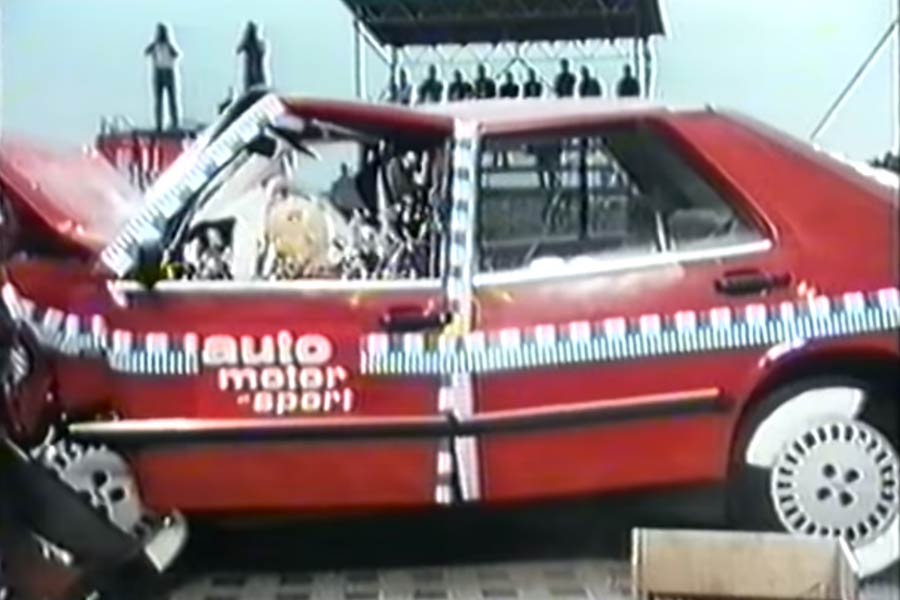 Πριν από 30 χρόνια, το γερμανικό περιοδικό Auto Motor und Sport, είχε κάνει πάταγο με τα crash tests σε αυτοκίνητα διαφόρων κατηγοριών. Στα περισσότερα μοντέλα τα αμαξώματά τους κατέρρεαν, αφού τα πλαίσιά τους δεν άντεχαν και τα ανδρείκελα εγκλωβίζονταν στην παραμορφωμένη καμπίνα. Το αυτοκίνητο προσέκρουε με ταχύτητα 55 χλμ./ώρα και με το 50% της μετωπικής του επιφάνειας πάνω σε ένα σταθερό και συμπαγή τοίχο που είχε κλίση 12 μοιρών. Η δοκιμασία ήταν πολύ σκληρή και δεν αποκλείεται ακόμα και τωρινά αυτοκίνητα να μην προστάτευαν αποτελεσματικά τον οδηγό.