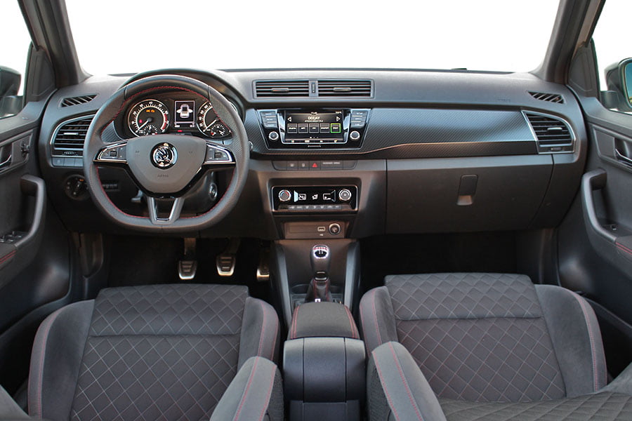 Στο θάλαμο των επιβατών της Fabia με τις απαλές καμπύλες επιφάνειες και τις ίσιες γραμμές έχει γίνει ευρεία χρήση σκληρών πλαστικών, τα οποία πείθουν με την συναρμογή και το φινίρισμά τους. Πολύ καλή είναι η θέση οδήγησης, η εργονομία των διαφόρων χειριστηρίων και η πρακτικότητα, χάρη στις πολλές θήκες. Στα «συν» του μικρού Skoda ανήκουν ακόμα οι άνετοι χώροι για τέσσερις ενήλικους επιβάτες και το μεγάλο πορτ μπαγκάζ των 330 λίτρων.