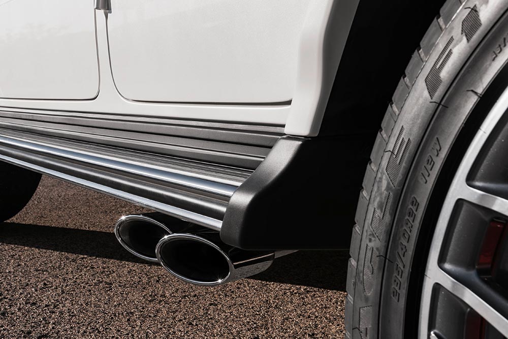 H G 63 με το κλασικό τετραγωνισμένο αμάξωμα των 4.606 χλστ. μήκους, 1.931 χλστ. πλάτους, 1.969 χλστ. ύψους και με το μεταξόνιο των 2.890 χλστ., συνδυάζει ταχύτατες επιδόσεις, με κορυφαία εκτός δρόμου χαρακτηριστικά. Πατάει σε ζάντες διαμέτρου 22 ιντσών, ενώ μεταξύ των μοναδικών της χαρακτηριστικών γνωρισμάτων είναι και οι διπλές απολήξεις τις εξάτμισης που βγαίνουν από τα μαρσπιέ εκατέρωθεν του οχήματος. Το βάρους 2,5 τόνων πολυτελές «άρμα» εξοπλίζεται με τον υπερτροφοδοτούμενο V8 κινητήρα των 4.0 λτ., ισχύος 585 ίππων και 850 Nm ροπής, στις 2.500-3.500 σ.α.λ. Σε συνδυασμό με το 9άρι αυτόματο κιβώτιο ταχυτήτων επιταχύνει στο 0-100 χλμ./ώρα σε 4,5 δλ., και η μέγιστη ταχύτητα περιορίζεται ηλεκτρονικά στα 220 χλμ./ώρα ή 240 χλμ./ώρα με το Driver’s package. Εντυπωσιακή είναι όμως και η εργοστασιακή κατανάλωση των 16,4 λτ./1000 χλμ. (!), όπως και οι εκπομπές CO2 των 373 γρ./χλμ.