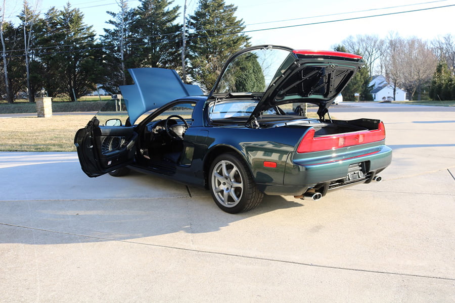 Το συγκεκριμένο NSX το οποίο είναι βαμμένο σε αυτό το ιδιαίτερο σκούρο πράσινο χρώμα, (Brooklands Green, ο κωδικός του χρώματος), έχει έναν 3λιτρο VTEC κινητήρα, ο οποίος συνεργάζεται με 5αρι κιβώτιο ταχυτήτων. Αμφότερα είναι κυριολεκτικά άστρωτα μιας και όπως αναφέραμε έχουν διανυθεί μόλις 300 χλμ.! Πληροφοριακά, το μοτέρ του αποδίδει 270 ίππους και 285 Nm ροπής και επιταχύνει το βάρους 1.370 κιλών αμάξωμα από 0-100 χλμ./ώρα σε 5,9 δευτερόλεπτα.