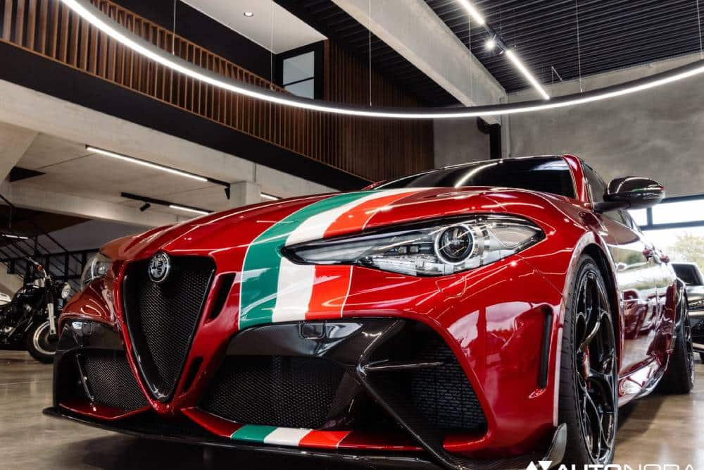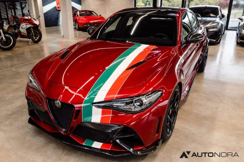Η Alfa Romeo είναι συνώνυμο της Ιταλίας. Ειδικά οι Giulia QV/GTA/GTAm, των οποίων ο κινητήρας βασίζεται σε μοτέρ της Ferrari, είναι η αποθέωση του «Forza Italia»! Η συγκεκριμένη, δε, πάει ένα βήμα παραπέρα, φορώντας τα χρώματα της σημαίας του έθνους στο κορμί της.