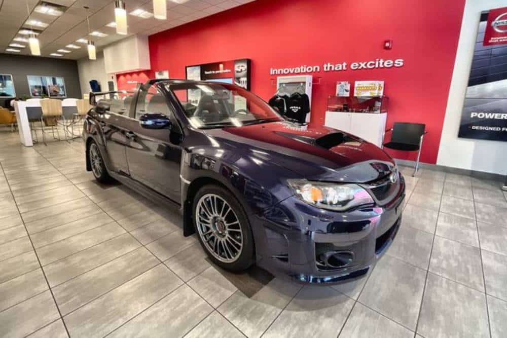 Το μωβ (Plasma Blue Pearl η ονομασία του χρώματος) «Scoobie» ξεκίνησε ως ένα τυπικό δείγμα Impreza STI 3ης γενιάς, με σεντάν αμάξωμα. Στην Ευρώπη το μάθαμε αποκλειστικά ως χάτσμπακ, όμως στην Αμερική ακολουθήθηκε η ακριβώς αντίθετη πορεία (μόνο ως τετράθυρο). Κάμπριο δεν κυκλοφόρησε πουθενά. Για την ακρίβεια, από το 1953 που ιδρύθηκε η Subaru μέχρι σήμερα, δεν έχει λανσαριστεί ανάλογο αυτοκίνητο με σήμα τις Πλειάδες! Το Impreza STI Convertible είναι προϊόν φαντασίας και μαστοριάς της Newport Specialty Cars, από την Καλιφόρνια, διατηρώντας πλήρως τη λειτουργικότητά του, αλλά με πολύ πιο εύκολη πρόσβαση από τα αυτιά στις μελωδίες του boxer.