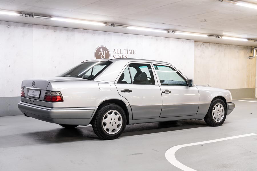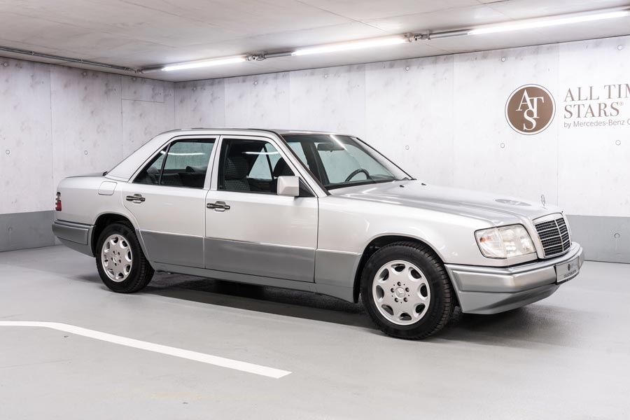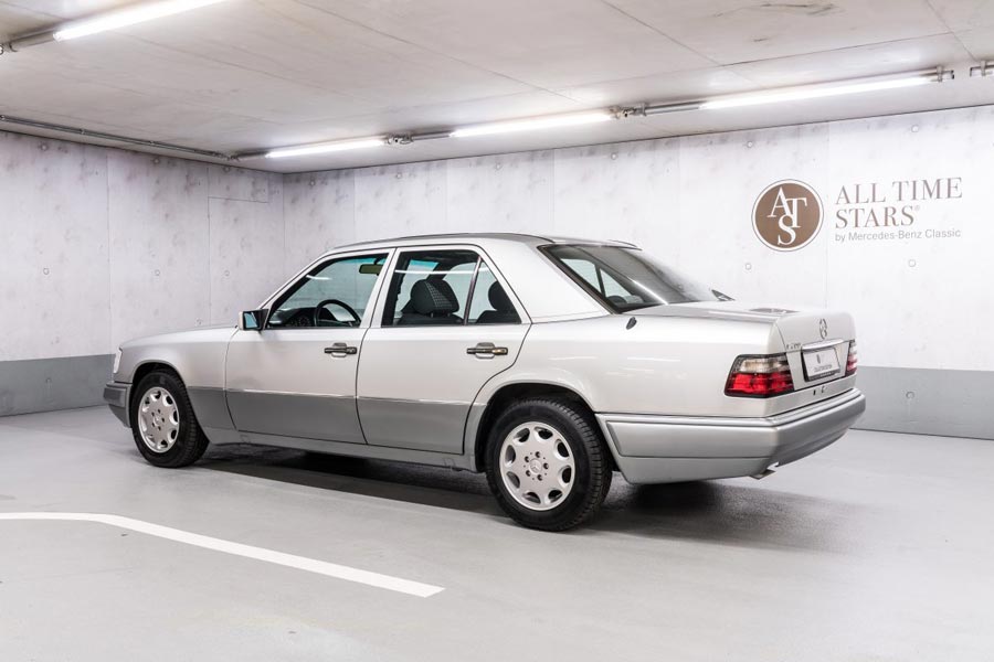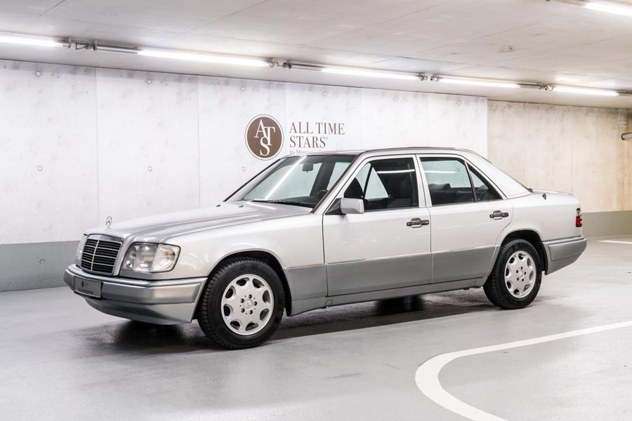 Πρόκειται για ένα από τα τελευταία μοντέλα που βγήκαν από τη γραμμή παραγωγής (κατασκευής του 1995) για να αντικατασταθεί από την χαρακτηριστική E-Class W210 με τα στρογγυλά φανάρια. Σύμφωνα με την περιγραφή της All Time Stars της Mercedes, η εικονιζόμενη E 200 έχει διανύσει 48.800 χλμ. (στο κοντέρ γράφει 46.397 χλμ.) και είχε 3 προηγούμενους κατόχους. Το αυτοκίνητο διαθέτει όλα τα αρχεία του με τις καταγραφές των service, εγχειρίδιο χρήσης και πλήρες σετ εργαλείων. Αυτή η κλασική σεντάν Mercedes έχει περάσει από κάθε έλεγχο και συνοδεύεται από 12μηνη εγγύηση.