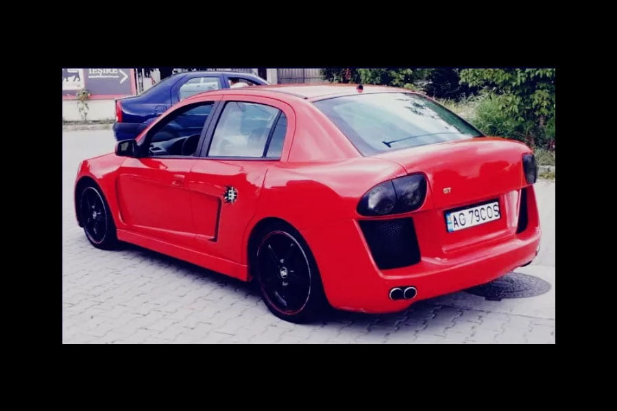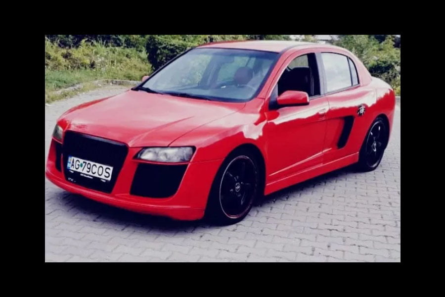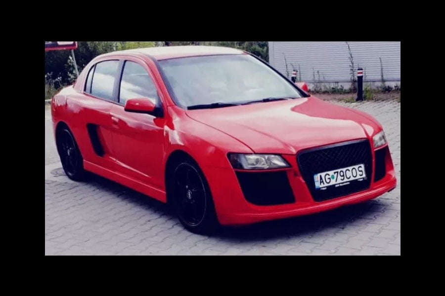 Όπερ και εγένετο με πολύ φαντασία βεβαίως. Το εμπρός και πίσω τμήμα του αμαξώματος αλλάχτηκαν πλήρως, τοποθετήθηκαν νέοι προφυλακτήρες και φανάρια, μεγάλη μάσκα (στην αγγελία αναφέρει ότι είναι από R8) και αεραγωγοί τα πλαϊνά, δύο διπλές εξατμίσεις, μπόλικα συνθετικά μέρη στο αμάξωμα για να φαρδύνει και ζάντες 19 ιντσών της Oz. Για το εσωτερικό δεν υπάρχει φωτογραφία, όμως αναφέρεται ότι έχει επενδυθεί με δέρμα σε αποχρώσεις κόκκινου – μαύρου.