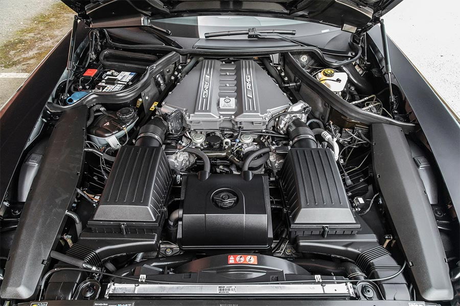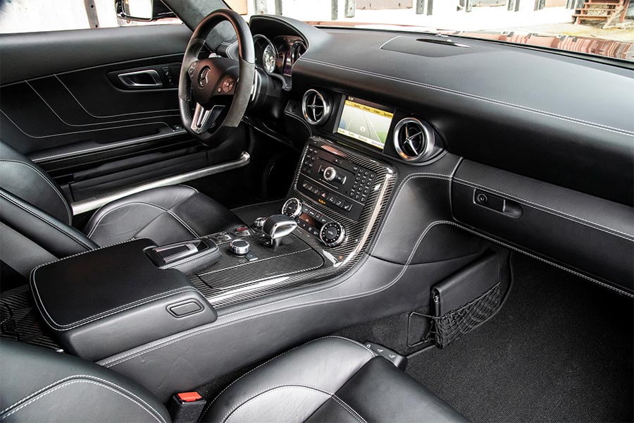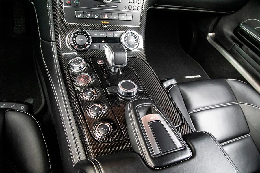 Μάλιστα η εικονιζόμενη Mercedes-Benz SLS AMG Roadster του 2012 βρίσκεται σε άριστη κατάσταση, με μόλις 10.500 χλμ. στο κοντέρ. Κάτω από το μακρύ και μυώδες εμπρός καπό της φιλοξενείται ο θηριώδης ατμοσφαιρικός κινητήρας των 6.208 κ.εκ., ισχύος 571 ίππων και 650 Nm ροπής, να προσφέρει εκρηκτικές επιδόσεις. Σημειώστε: 0-100 χλμ./ώρα σε μόλις 3,8 δλ., και τελική ταχύτητα στα 317 χλμ./ώρα! Η μετάδοση της κίνησης πραγματοποιείται μέσω του 7τάχυτου κιβωτίου διπλού συμπλέκτη, με τη δύναμη να καταλήγει στον πίσω άξονα.