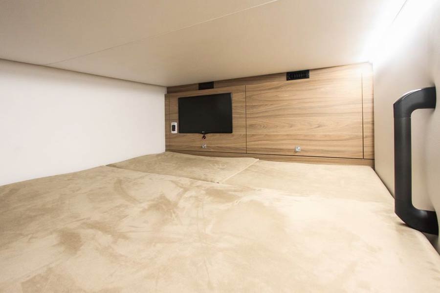 Οι επιβάτες έχουν στη διάθεσή τους ένα άνετο καθιστικό, κρεβάτια, τηλεόραση, κουζίνα, φούρνο, τουαλέτα, ντους, μπόιλερ, ψυγείο, κλιματισμό, θερμαινόμενα εμπρός καθίσματα κ.λπ. Το μεγάλο αυτό όχημα των 18 τόνων καθαρού βάρους και 25 τόνων μεικτού βάρους είναι καινούργιο και όπως καταλαβαίνετε, μόνο φθηνό δεν είναι. Συγκεκριμένα πωλείται στην τιμή των 335.000 χωρίς φόρους ή στις 398.650 ευρώ με φόρους (τιμή Γερμανίας).