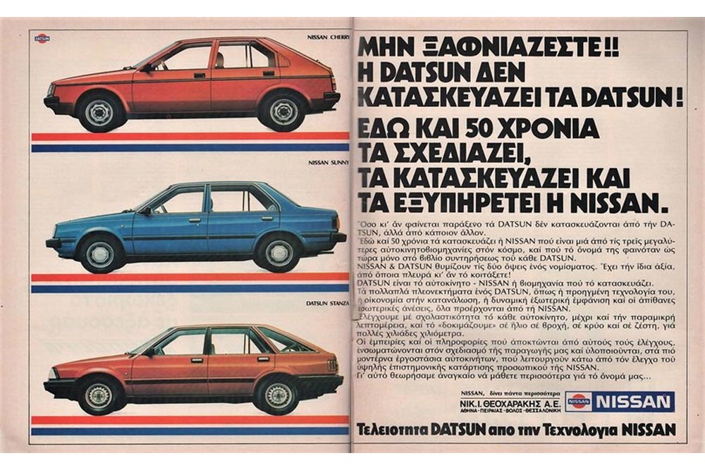 Γυρνώντας το χρόνο πίσω 44 ολόκληρα χρόνια και συγκεκριμένα το 1981, η Nissan λανσάρισε το 5ης γενιάς Sunny B11. Διέθετε αρκετές πρωτιές για την ιαπωνική φίρμα και ήταν πολύ πιο σύγχρονο από τον προκάτοχό του, το Datsun 210. Καταρχήν, ήταν το πρώτο Sunny με κίνηση στους εμπρός τροχούς, αλλά όχι και το πρώτο Nissan, αφού εκείνο που εφάρμοσε για πρώτη φορά κίνηση μπροστά ήταν το Cherry του 1970. Η σειρά B11 θεωρήθηκε ως μια από τις πιο μοντέρνες σειρές της Nissan εκείνη την εποχή και ήταν η πρώτη που εγκατέλειψε επίσημα το όνομα Datsun, όπως μπορείτε να διαβάσετε και από την παρακάτω διαφήμιση.