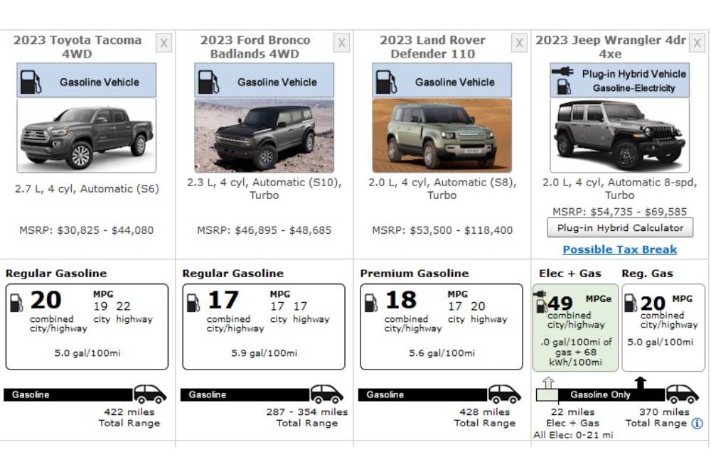 Σύμφωνα με τα στοιχεία των Αμερικανών, η μέση τιμή κατανάλωσης του Land Cruiser σε μεικτό κύκλο δεν υπερβαίνει τα 27 μίλια/γαλόνι. Ελάχιστα πάνω από 8,7 λίτρα/100 χλμ., στα δικά μας μέτρα (8,71 για την ακρίβεια). Εξαιρετικό νούμερο για αυτοκίνητο 326 ίππων και βάρος άνω των 2 τόνων, που γίνεται ακόμα καλύτερη αν δούμε τι επικρατεί στην κατηγορία. Το Ford Bronco 2.3 ΕcoBoost, για παράδειγμα, είναι στα 17 μίλια/γαλόνι (13,8 λίτρα/100 χλμ.), ενώ το Land Rover Defender 110 2.0 Τurbo στα 18 μίλια/γαλόνι (13 λίτρα/100 χλμ.). Μόνο το plug-in υβριδικό Jeep Wrangler 4xe καταφέρνει να ξεπεράσει το Land Cruiser, με 49 μίλια/γαλόνι (4,8 λίτρα/100 χλμ.).