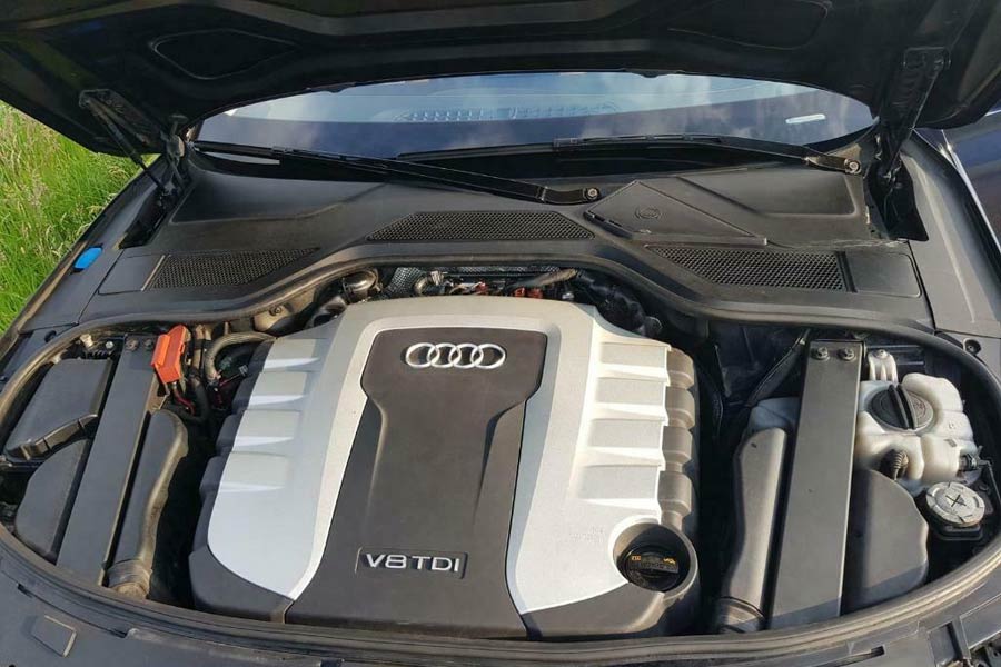 Ο εξοπλισμός του είναι εντυπωσιακός και αγγίζει την υπερβολή, τόσο σε συστήματα ανέσεων, όσο και ασφαλείας. Την κίνησή του αναλαμβάνει ο πετρελαιοκινητήρας 4.2 V8 TDI, ο οποίος αποδίδει 350 ίππους και πλούσια ροπή 800 Nm στις 1.750 σ.α.λ. Σε συνδυασμό με το 8άρι tiptronic και την τετρακίνηση quattro, το μεγάλο σεντάν των 5,2 μ. μήκους επιτάχυνε όταν ήταν καινούργιο από 0-100 χλμ./ώρα σε 5,5 δλ., ενώ η τελική ταχύτητα περιοριζόταν ηλεκτρονικά στα 250 χλμ./ώρα.
