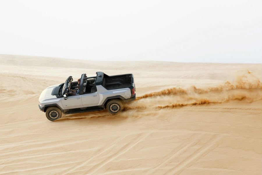 Φυσικά, η αποθέωση της τεχνολογίας βρίσκεται κάτω από το αμάξωμα (που διαθέτει αφαιρούμενα πάνελ, όπως το Jeep Gladiator). Το Hummer του 2020 είναι αμιγώς ηλεκτρικό, διαθέτοντας 3 κινητήρες συνδυαστικής απόδοσης 1.014 ίππων και 15.592 Nm ροπής! Με τέτοια ισχύ, το τετρακίνητο θηρίο επιταχύνει στα 100 χλμ./ώρα από στάση σε 3 δλ., χρησιμοποιώντας το -ευφάνταστα βαπτισμένο- «Watts to Freedom» launch control. Η αυτονομία φτάνει μέχρι τα 563 χλμ. και η μπαταρία Ultium, με τη χρήση ταχυφορτιστή, μπορεί να πάρει 161 χλμ. μέσα σε 10 λεπτά.