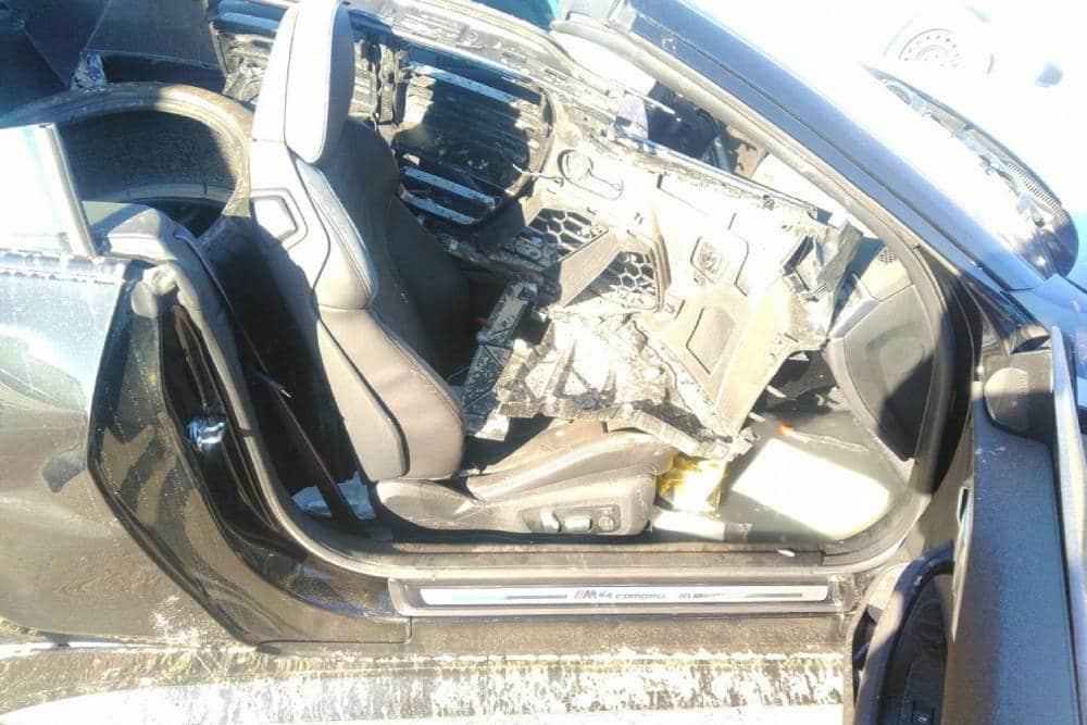 Η εν λόγω M4 Competition είναι μάλιστα τετρακίνητη, οπότε θα μπορούσε να λειτουργήσει ως δότης πολλαπλών μηχανικών μερών – πάντα με την προϋπόθεση πως λειτουργούν ή, έστω, επισκευάζονται/αντικαθίστανται σε λογικό κόστος. Υπό κανονικές συνθήκες ο 3.0λτ. twinturbo εξακύλινδρος εν σειρά αποδίδει 510 ίππους στις 6.250 σ.α.λ., μαζί με 650 Nm μεταξύ 2.750 και 5.500 σ.α.λ. Ισχύς που μεταφέρεται σε όλους τους τροχούς, μέσω του συστήματος Μ xDrive και 8τάχυτου αυτόματου κιβωτίου, και εξασφαλίζει επιτάχυνση 0-100 χλμ./ώρα σε 3,6 δλ. (φιξ η ηλεκτρονικά περιοριζόμενη τελική των 250 χλμ./ώρα).