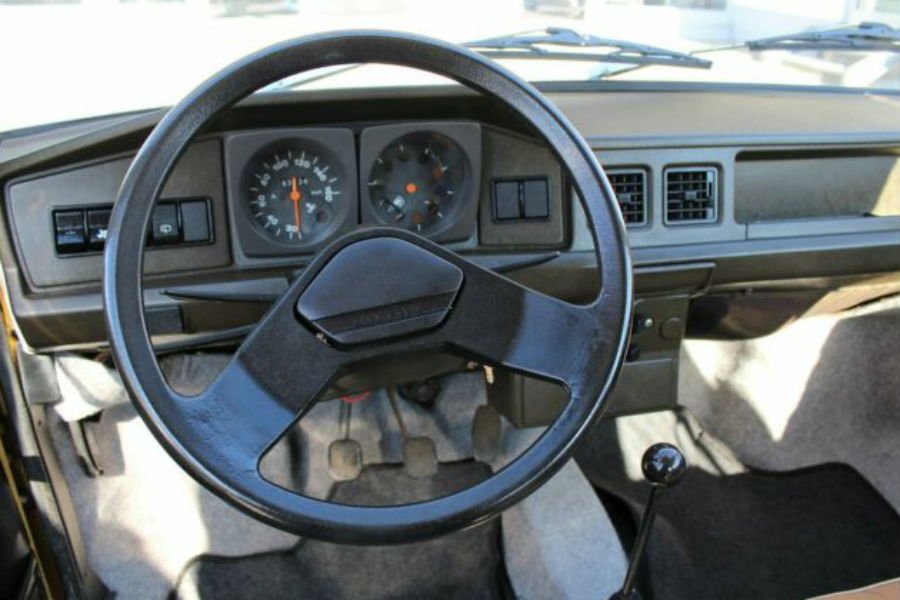 Το εσωτερικό του είναι κυριολεκτικά σαν καινούργιο, με τις ταπετσαρίες να έχουν αλλαχθεί και τα πλαστικά να εμφανίζονται δίχως ίχνος χαρακιάς. Στον πίνακα οργάνων δεσπόζει το κυκλικό πολυόργανο δίπλα στο ταχύμετρο, που φιλοξενεί διάφορες λυχνίες και λειτουργεί σαν ρολόι, ενώ το δάπεδο και το ταμπλό χαρακτηρίζονται από τον λεβιέ που ξεφυτρώνει ανάμεσα στα καθίσματα. Πόσο ζητάνε οι Γερμανοί για όλα τα ανωτέρω; «Μόλις» -κατά δήλωση των ίδιων- 3.790 ευρώ, καθότι μιλάμε για ένα συλλεκτικό αυτοκίνητο που δεν εισήχθη ποτέ στην χώρα τους. Τα δίνατε;
