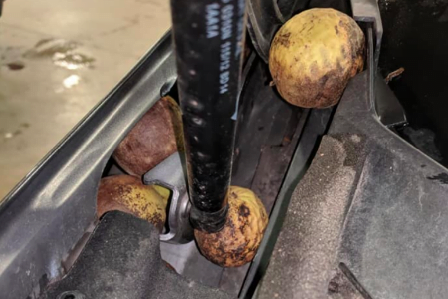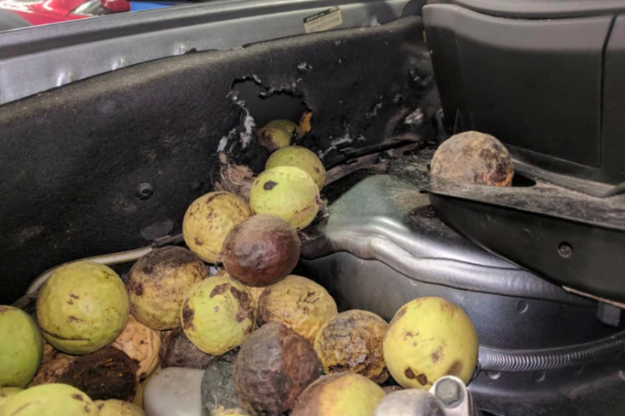 Το μηχανοστάσιο του 3.5 V6 είχε μετατραπεί σε αποθήκη ενός σκίουρου, ο οποίος συγκέντρωνε τα καρύδια του κάτω από το καπό του Murano. Ολόκληρος ο χώρος του κινητήρα ήταν γεμάτος με το σνακ του συμπαθέστατου τρωκτικού, το οποίο είχε καταφέρει να τα τρυπώσει ακόμα και μέσα στους θόλους των τροχών! Αυτό ήταν και το σημείο εισόδου για τον σκίουρο, καθώς είχε μασήσει την μόνωση στο εσωτερικό των φτερών και μπαινοέβγαινε ανενόχλητος. Μάλιστα έφαγε και την μόνωση στο καπό, για να χωράει καλύτερα.