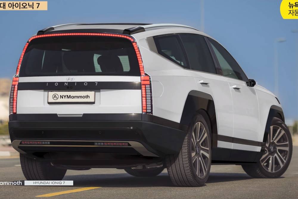 Το μεγάλο ηλεκτρικό SUV των Κορεατών εμφανίστηκε πρώτη φορά το 2021 ως πρωτότυπο, μέσω του Seven. Το rendering του The Korean Car Blog μας βάζει στο κλίμα, με τη μεγάλη μάσκα εμπρός και την ενιαία διάταξη των φωτιστικών σωμάτων εμπρός – πίσω, που ουσιαστικά «καθρεπτίζουν» ένα με το άλλο, να αποτελούν τα σχεδιαστικά highlights των ψηφιακών απεικονίσεων. Οι μεγάλες διαστάσεις και το επιβλητικό παράστημα επίσης χαρακτηρίζουν το παρουσιαστικό του Ioniq 7 ή 9 (αυτές είναι οι δυο πιθανότερες ονομασίες), που θα βασιστεί στη γνώριμη πλατφόρμα E-GMP και θα κυκλοφορήσει σε αρκετές εκδόσεις.