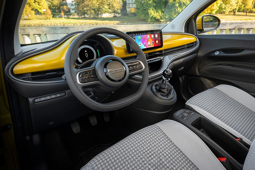 Όπως εξωτερικά, έτσι και το εσωτερικό του νέου 500 Hybrid είναι στο μεγαλύτερο μέρος του ίδιο με του ηλεκτρικού 500. Εξαίρεση αποτελεί η κεντρική κονσόλα, όπου στη βάση της έχει τοποθετηθεί ο λεβιές ταχυτήτων, αντί των διακοπτών της αυτόματης μετάδοσης του 500e. Το υβριδικό 500 διατίθεται ήδη σε μεγάλες αγορές της Ευρώπης σε τέσσερις εκδόσεις εξοπλισμού (Pop, Icon, la Prima και την ειδική Torino). Στην Ελλάδα αναμένεται να λανσαριστεί προς τα τέλη του πρώτου τριμήνου του 2026, δηλαδή στις αρχές της άνοιξης. Τιμές ακόμα δεν έχουν ανακοινωθεί για τη χώρα μας, όμως στην Ιταλία εκκινεί από 19.900 ευρώ το Pop (από 16.950 ευρώ με προωθητικές ενέργειες), από 20.900 ευρώ το Torino, από 21.400 ευρώ το Icon και από 24.400 ευρώ το la Prima.