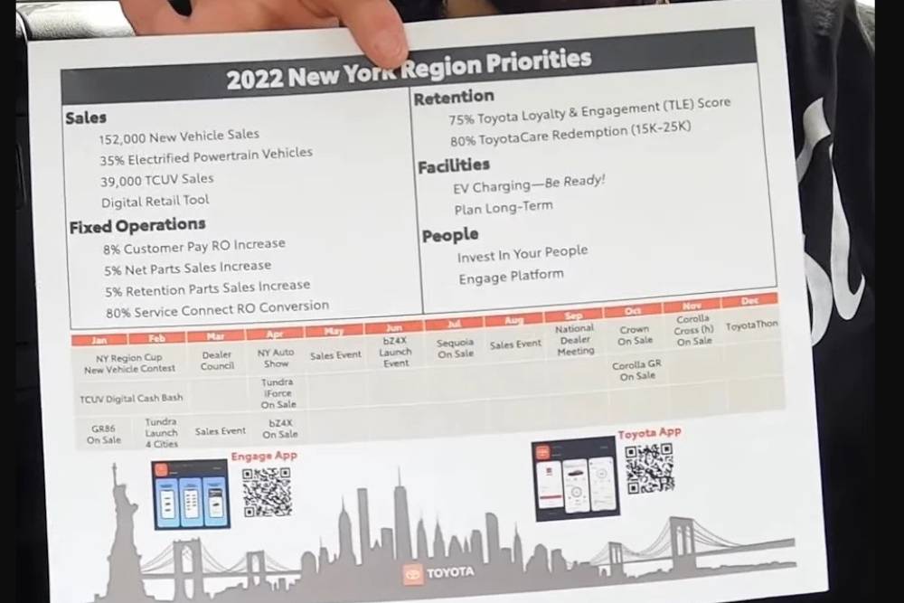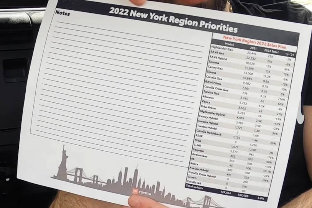Τη λύση και εδώ δίνουν οι διαρροές, αποκαλύπτοντας το πότε θα βγει στην αγορά το πολυαναμενόμενο hot hatch! Ένας Αμερικανός πήρε στα χέρια του έγγραφα από αντιπροσωπεία της Toyota στη Νέα Υόρκη, που αποτυπώνουν το οργανόγραμμα του καταστήματος για το 2022. Όπως μπορούμε να δούμε, το GR Corolla θα ξεκινήσει την εμπορική του πορεία στις Ηνωμένες Πολιτείες τον προσεχή Οκτώβριο, με τον συγκεκριμένο ντίλερ να αναμένει την πώληση 90 κομματιών μέχρι το τέλος του έτους. Κάτι που σημαίνει πως η πρεμιέρα του θα γίνει νωρίτερα, ενδεχομένως στα τέλη καλοκαιριού ή τις αρχές φθινοπώρου.