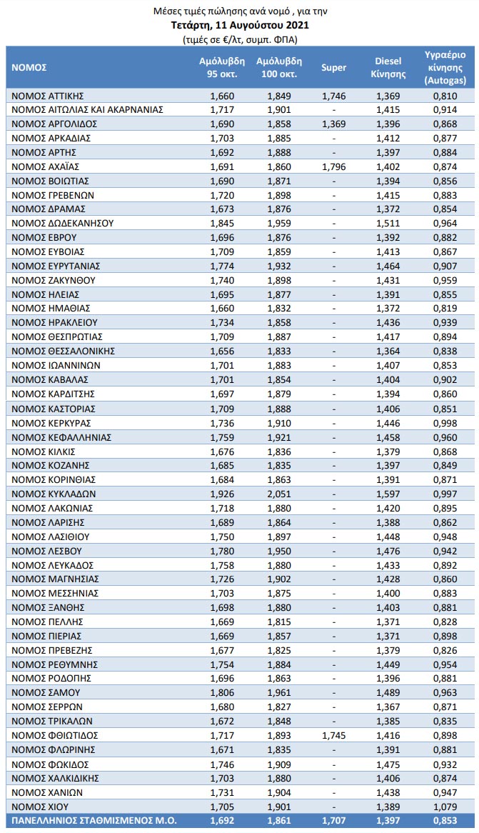 Σε μεγάλα αστικά κέντρα, μπορεί ακόμα να βρει κανείς μια «χαμηλή» τιμή σε βενζίνη, όπως είναι από 1,533 €/λτ. στην Αττική και από 1,558€/λτ. στη Θεσσαλονίκη. Όμως, στις περισσότερες επαρχίες το κόστος σκαρφαλώνει πάνω από 1,7€/λτ., ενώ στα νησιά του Αιγαίου, η βενζίνη έχει… λαμπαδιάσει, αφού στα Δωδεκάνησα και στις Κυκλάδες η ανώτερη τιμή έχει περάσει σε αρκετά πρατήρια τα 2€/λτ.