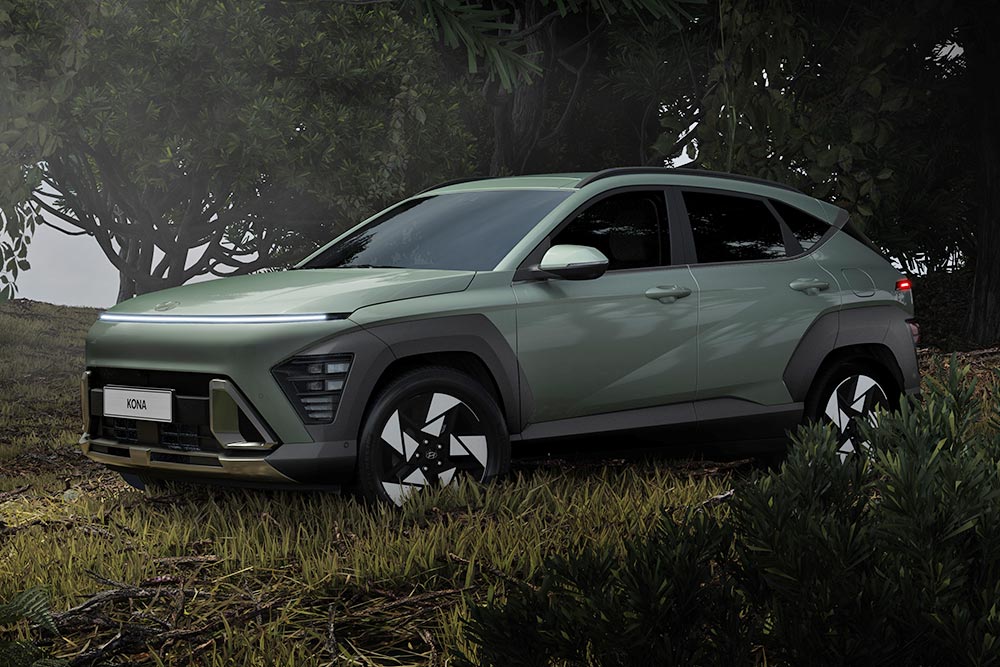 Ξεκινώντας από το ολοκαίνουργιο Hyundai Kona, θα είναι διαθέσιμο σε αμιγώς ηλεκτρικό (EV), υβριδικό (HEV), με κινητήρα εσωτερικής καύσης (ICE) και σε σπορ έκδοση N Line, το καθένα με το δικό του μοναδικό στυλ. Συγκριτικά με το προγενέστερο, το νέο Kona, εκτός από το ότι είναι τελείως διαφορετικό σχεδιαστικά, μεγάλωσε αισθητά και σε διαστάσεις. Συγκεκριμένα το μήκος έφτασε τα 4.355 χλστ. (+150 χλστ.), το πλάτος κέρδισε 25 χλστ. και το μεταξόνιο μάκρυνε 60 χλστ.