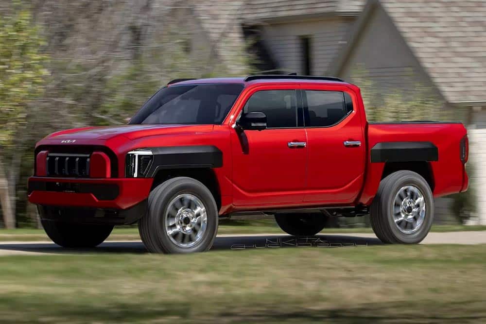 Κάτι που έκανε ψηφιακά ο Kelsonik για το Kolesa και όπως φαίνεται δεν θα απέχει πολύ από την πραγματικότητα. Το νέο Kia Tasman θα διαθέτει σκληροτράχηλο παρουσιαστικό με μυώδη χαρακτηριστικά και ανάγλυφες επιφάνειες ειδικά στο εμπρός μέρος του. Σε αυτό εντύπωση προκαλεί ο ιδιόμορφος σχεδιασμός της μάσκας και των ακροβολισμένων ορθογώνιων φωτιστικών σωμάτων που ενώνονται με τα μαύρα καλύμματα στους θόλους των τροχών. Τέτοια καλύμματα συναντώνται και στα πίσω φτερά, ενώ τη διπλή καμπίνα διατρέχει στο κάτω μέρος ένα νεύρο. Στο πίσω μέρος τα κάθετα LED φανάρια διαθέτουν δύο λεπτές οριζόντιες λωρίδες που καταλήγουν στη χειρολαβή της πόρτας της καρότσας. Το εσωτερικό του νέου Kia Tasman θα είναι πλήρως ψηφιοποιημένο, με κυρίαρχο στοιχείο το παραλληλόγραμμο λεπτό πάνελ που ενσωματώνει τον πίνακα οργάνων και το infotainment.