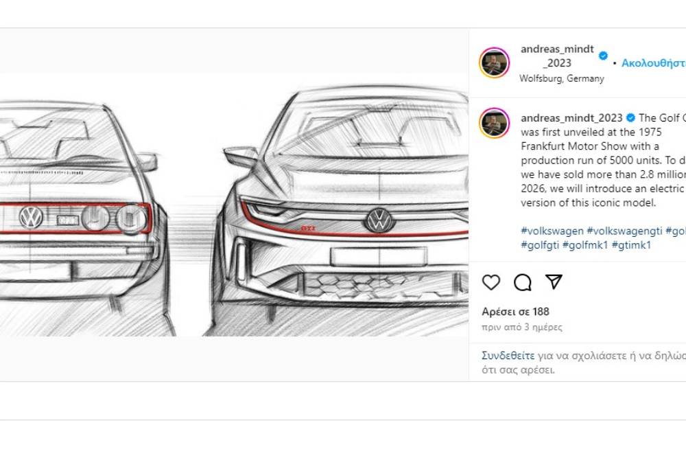 Από το 2026 (στην 50η επέτειο του μοντέλου, δηλαδή) και μετά, όμως, θα έρθει να προστεθεί η αμιγώς ηλεκτρική επιλογή. Το πρωτότυπο ID. GTI έδειξε πώς θα είναι η κορυφαία έκδοση του επερχόμενου ID.2, με τον επικεφαλής σχεδίασης του Βόλφσμπουργκ να δημοσιεύει ένα σκίτσο του μελλοντικού EV GTI δίπλα στο πρώτο Golf GTI. Η λεζάντα αναφέρει την πρεμιέρα του MK1, στο Σαλόνι της Φρανκφούρτης το 1975, τις 5.000 μονάδες που κυκλοφόρησε, αλλά και τα 2,8 εκατ. Golf GTI που έχουν πουληθεί μέχρι σήμερα. Σε δυο χρόνια θα έρθει το πρώτο ηλεκτρικού του είδους, με σκοπό τη συνέχιση της εμπορικής επιτυχίας.