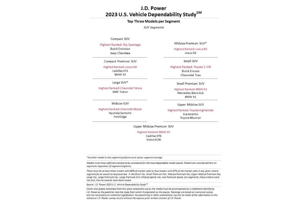 Η ίδια η BMW ήρθε 13η, καταφέρνοντας να ξεπεράσει το μέσο όρο για 2 PP 100 (186 PP100 o μ.ο., 184 PP100 τα βαυαρικά αυτοκίνητα), ενώ από εκεί και κάτω συναντάμε Infiniti, Porsche, Acura, Volvo, Jaguar, Audi, Lincoln και Land Rover. Οι τρεις τελευταίες καταλαμβάνουν τις ισάριθμες θέσεις στο τέλος της κατάταξης, με τους Άγγλους να βρίσκονται στη χειρότερη θέση όλων (273 PP100). H Tesla για πρώτη φορά συμμετείχε επίσημα, αλλά και πάλι δεν έδωσε έγκριση για εξέταση στοιχείων από όλες τις πολιτείες, οπότε το 242 PP100 είναι ενδεικτικό.