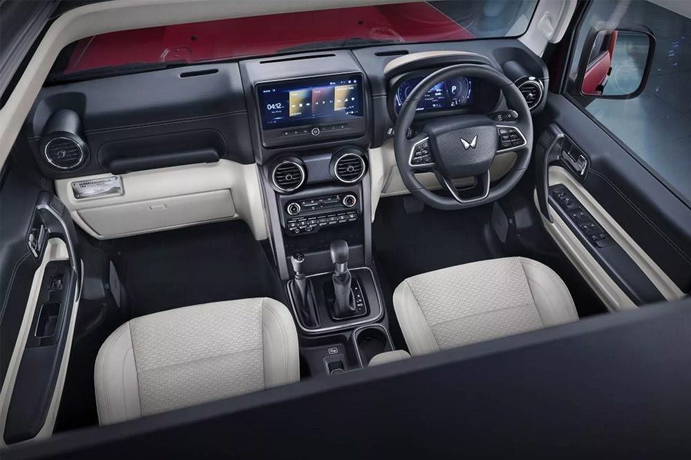 Το εσωτερικό του 5θυρου off roader της Mahindra είναι πανομοιότυπο με εκείνο του 3θυρου μοντέλου. Ωστόσο, η Ινδική φίρμα αναφέρει ότι επωφελείται από τα αναβαθμισμένα υλικά, την βελτιωμένη πρακτικότητα και την καλύτερη ηχομόνωση. Στον στάνταρ εξοπλισμό ανήκει η νέα κεντρική οθόνη των 10,25 ιντσών του infotainment, που ταιριάζει με τον ψηφιακό πίνακα οργάνων των 10,25 ιντσών (από το μεσαίο επίπεδο εξοπλισμού). Οι πιο πλούσιες εκδόσεις διαθέτουν ακόμα αυτόματο φρενάρισμα, υποβοήθηση διατήρησης λωρίδας, έλεγχο τυφλών σημείων, κάμερα οπισθοπορείας και όλα τα γνωστά στοιχεία ανέσεων, συνδεσιμότητας και ασφαλείας.