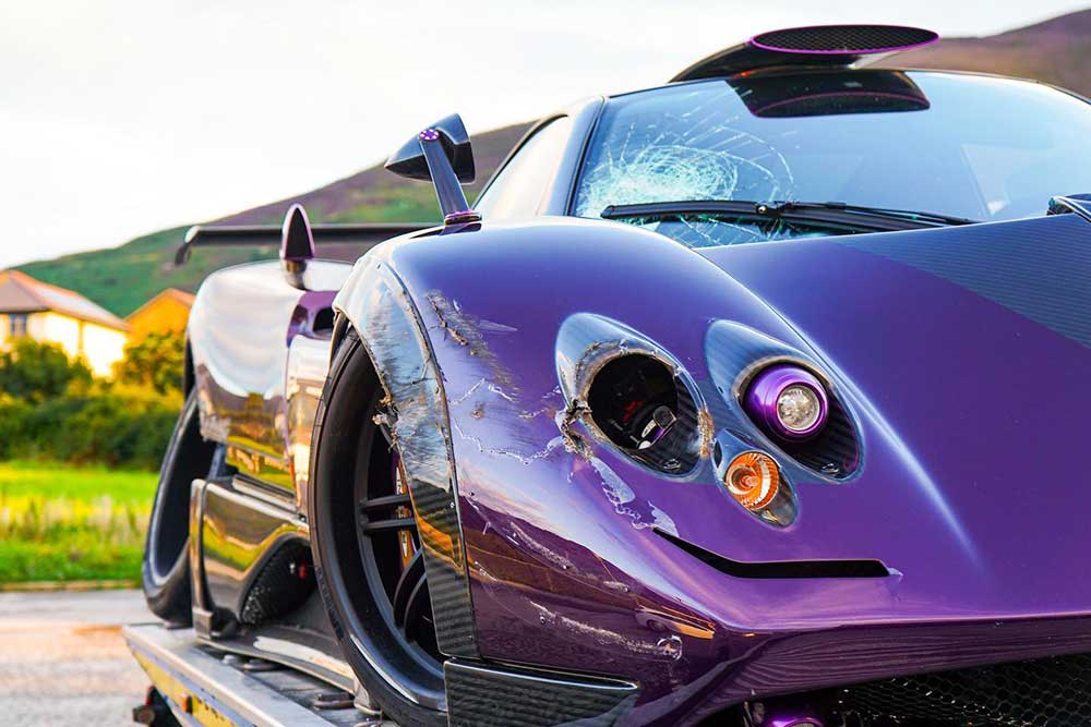 Σύμφωνα με το φωτογράφο Ethan Gale που μοιράστηκε τις φωτογραφίες του τρακαρισμένου Zonda στο προφίλ του στο Instagram, το ατύχημα έγινε στη σήραγγα Penmaenbach στον αυτοκινητόδρομο A55 στο Conwy της Βόρειας Ουαλίας. Το θετικό παρά ταύτα της όλης υπόθεσης είναι ότι ούτε ο οδηγός (εμφανώς σοκαρισμένος κατά τα λεγόμενα του φωτογράφου), ούτε κάποιος άλλος τραυματίστηκε από το περιστατικό. Αναμφίβολα όμως το αυτοκίνητο έχει υποστεί σοβαρές ζημιές, όπως σπασμένο πίσω άξονα, ραγισμένο παρμπρίζ, σπασμένους προβολείς και αρκετά κατεστραμμένα πάνελ του carbon αμαξώματος.