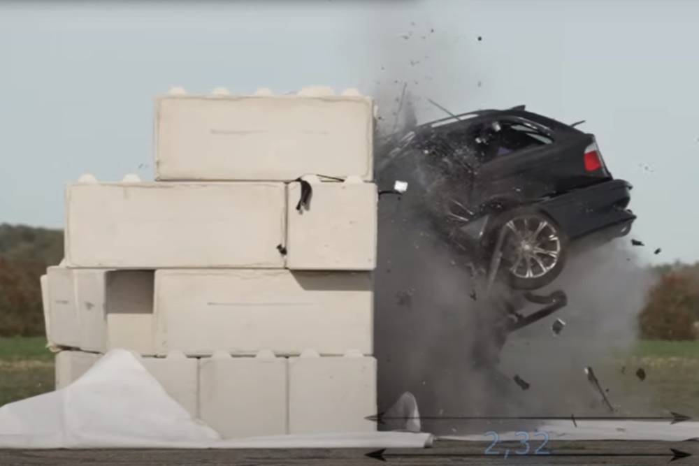 Το δύσμοιρο τετράτροχο που θυσιάστηκε για χάρη της επιστήμης, ήταν μια ειδικά μεταποιημένη BMW Σειρά 5 E39 Touring. Ένας αεροδιάδρομος ανέλαβε την αποστολή της διεξαγωγής του εγχειρήματος, με μια συστοιχία από τεράστια τσιμεντένια μπλοκ σε ρόλο δήμιου για το βαυαρικό estate. Η 5άρα απέκτησε ειδικό μηχανισμό τηλεκατεύθυνσης, συνοδευόμενη από τον κατάλληλο μετρητικό εξοπλισμό και κάμερες. Δυστυχώς, οι Γάλλοι δεν τοποθέτησαν τα ειδικά ανδρείκελα που γνωρίζουμε από τα καθιερωμένα crash tests. Η κατάληξη του αυτοκινήτου, πάντως, μάλλον περιττή θα καθιστούσε την παρουσία τους…